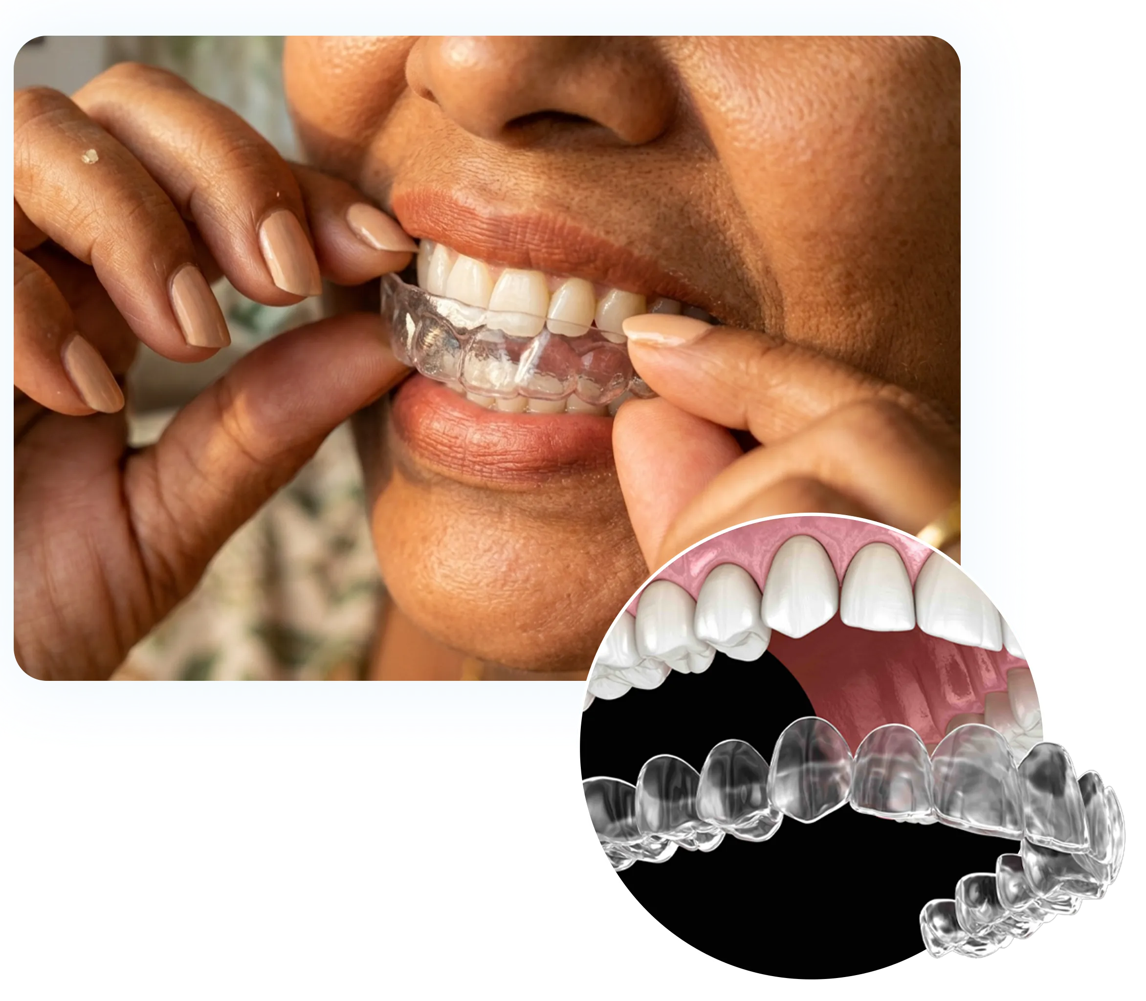 Each aligner tray is slightly different from the previous one. When worn in sequence, these trays apply controlled pressure to the teeth, allowing them to move slowly over time.